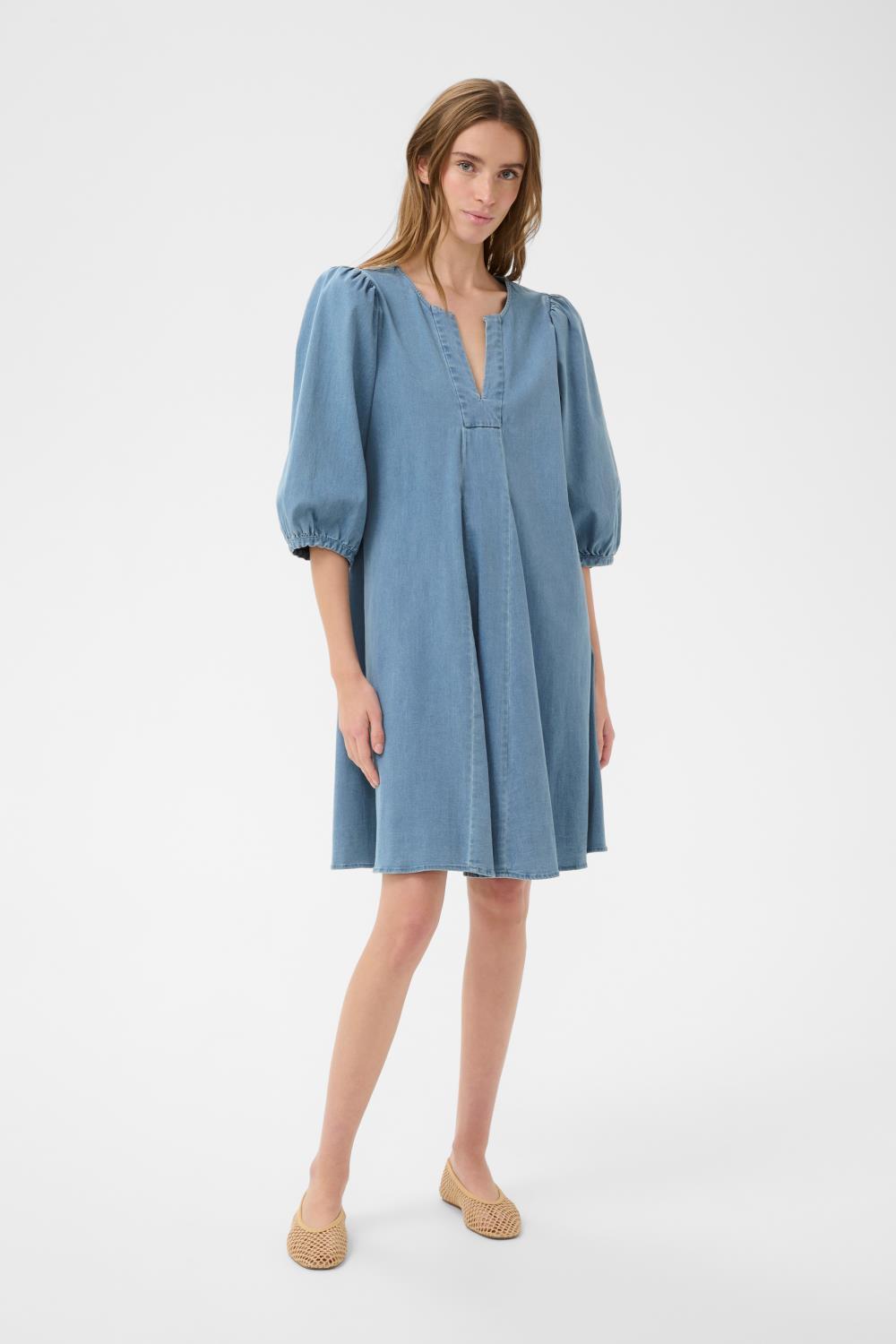 Myk og god denim kjole med flott A fasong.