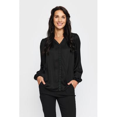Lekker bluse i 100% viscose fra 2Biz. v-utringning, vid erm med strikk nederst. Fine detaljer i gull