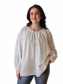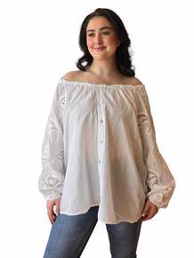 Lekker topp i 100% bomull fra Eurasia med blonde på ermer. Kan også brukes off-shoulders
