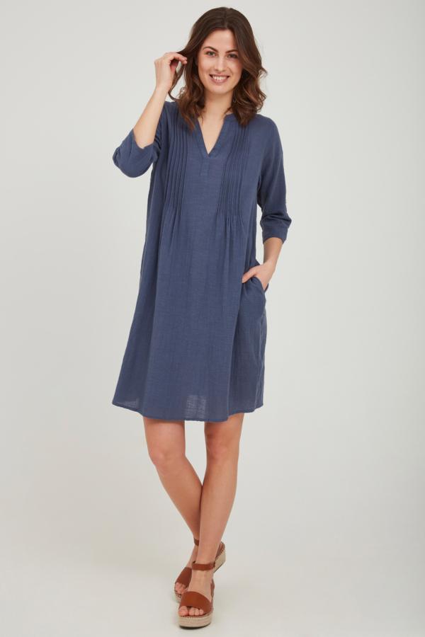 Fransa Kjole 3/4 arm, som kan brettes opp. V-hals, lommer i sidene. Tynn og behagelig kvalitet. 50% bomull 50% lin