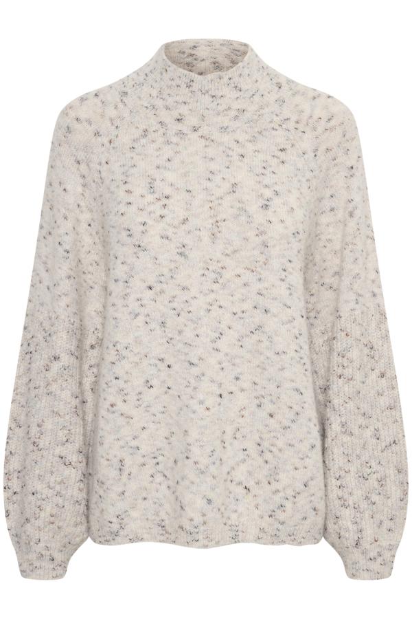 Fin strikket genser med «spetter» av sort, brunt og grått. 70% polyester 22% akryl 6% ull 2% elastan