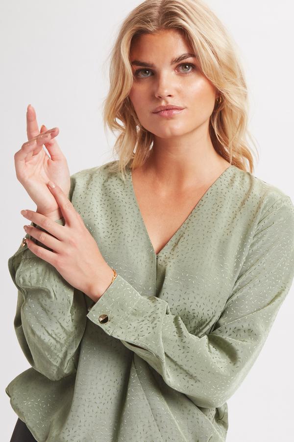 Vårens nyhet, bluse i 100% viskose. V hals og strikk nederst.