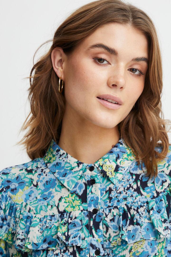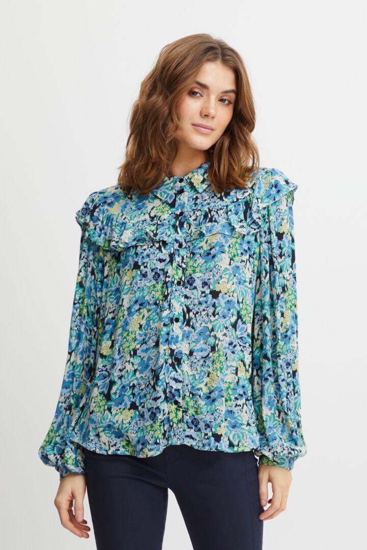 Lett helkneppet bluse i rett modell. Volangpynt på skulder. Knapplukning nederst på ermen. 100 % Viskose.