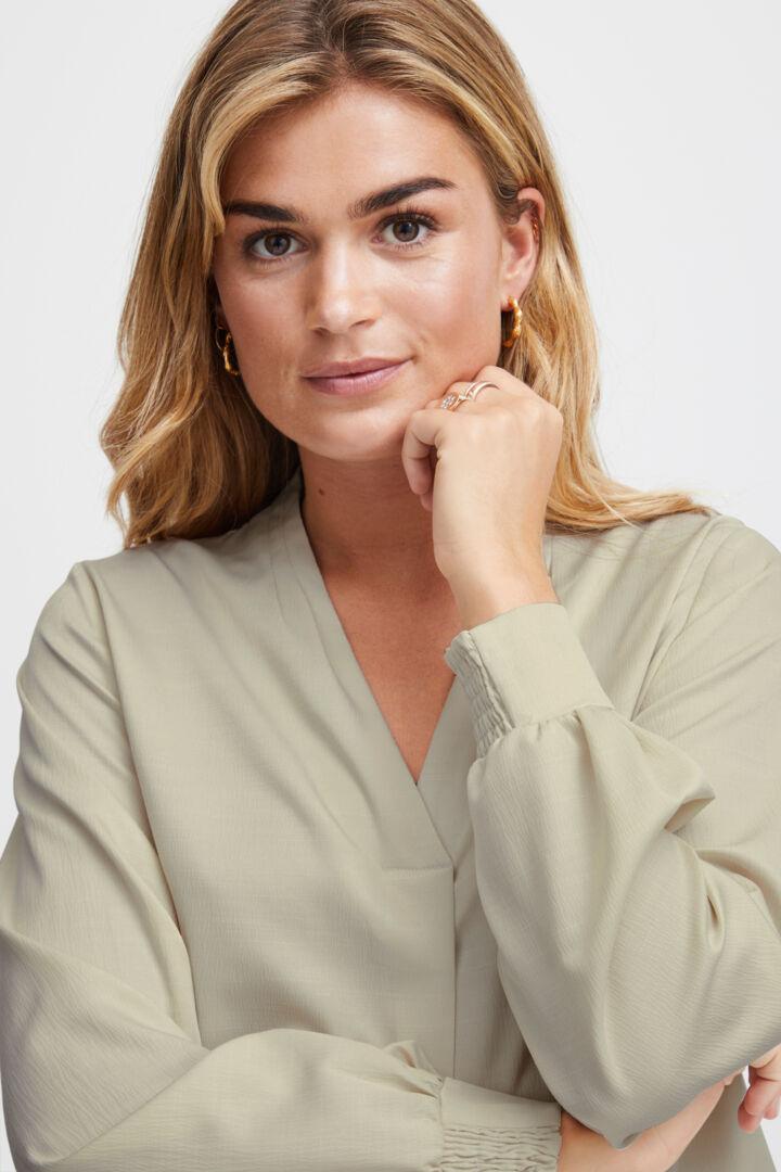 Enkel flott bluse med lang arm, med strikk nederst.