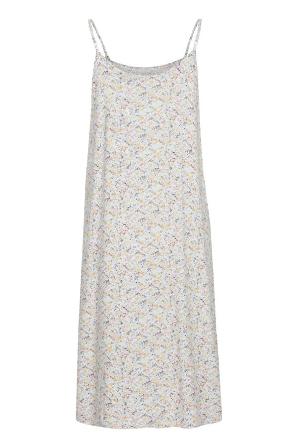 Fransa Tynn og lett kjole med skulderstropper. Små blomster i flere farger på hvit bunn. 100% viskose