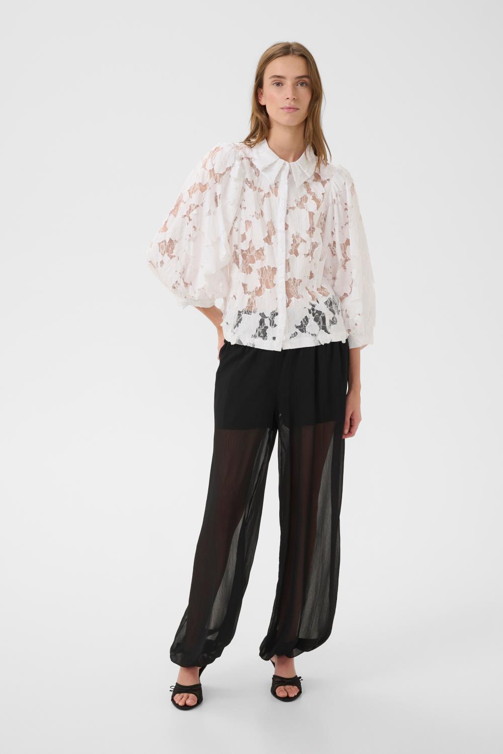Lekker bluse fra Karen By Simonsen. Transparent, fine broderi og detaljer.