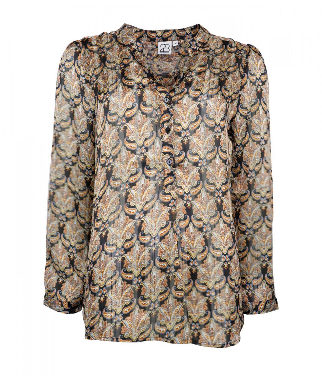 Lekker, ledig topp med diskre gullshimmer. Sort i bunnen med gyllent mønster. 100% polyester.