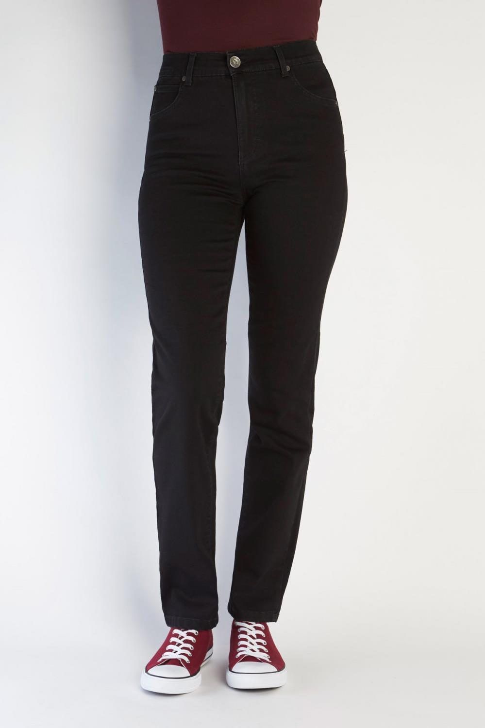 En rett modell, i mørk jeans blå. Pynt på lommene bak.
