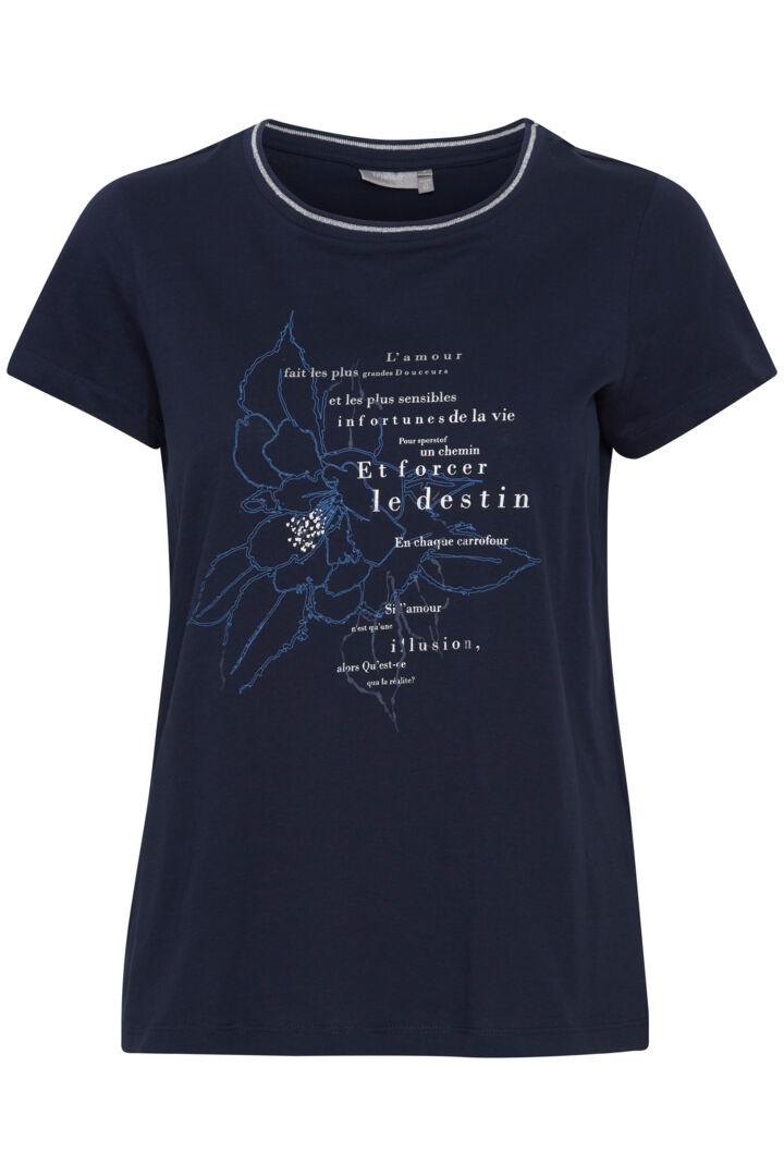 T-skjorte i 100% bomull med diskre skrift- og printdetaljer i sølv. Rett modell med rund hals