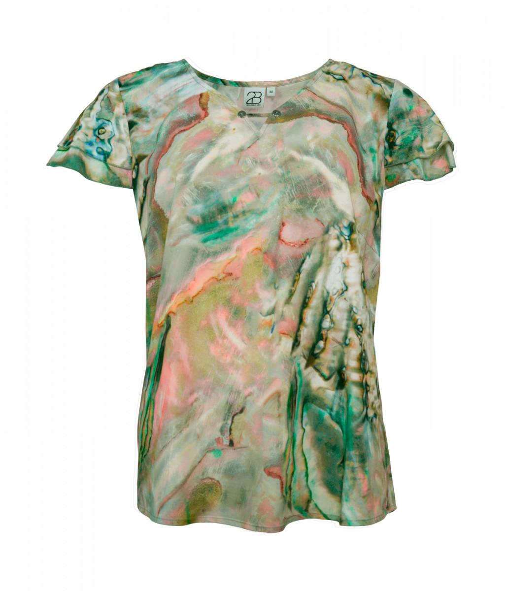 2BIZ Topp med kort arm. 2 «lag» på armene, fint pyntet i hals utringningen med to knapper.
