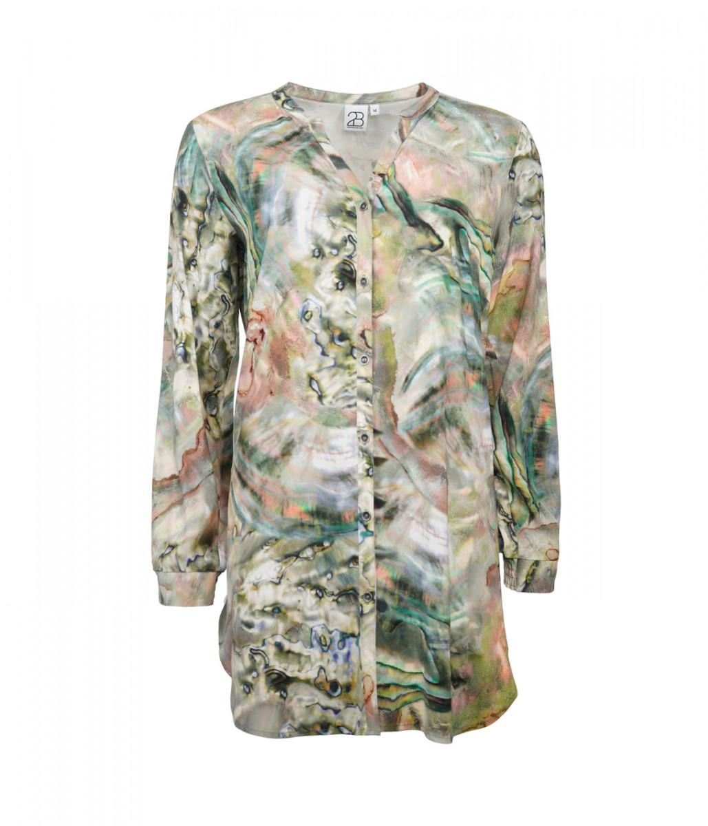 2 Biz Bluse uten krage, dekorative knapper foran. Lekkert mønster i flere farger. 98% viskose 2% elastan