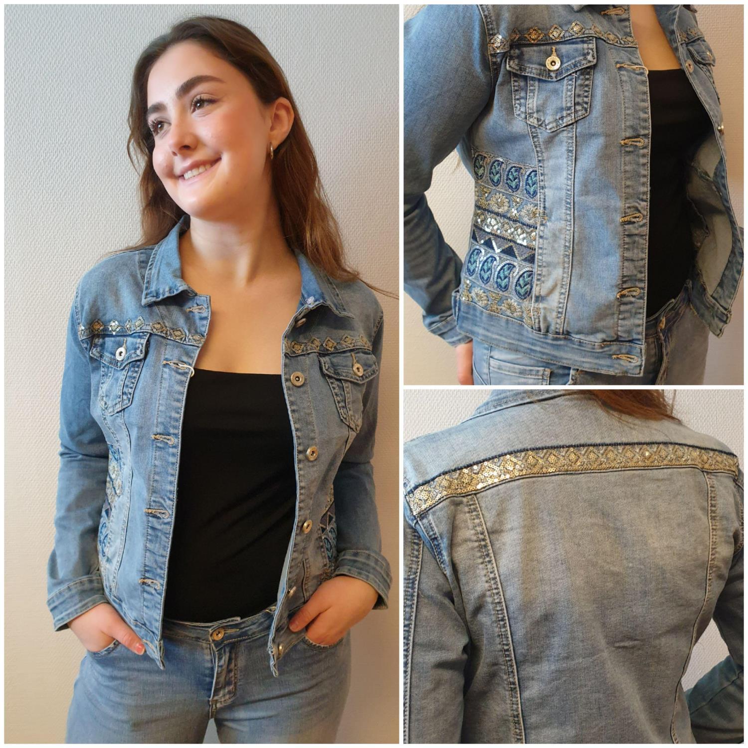 Tøff jeans jakke, med hette og dekor.